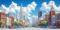 Vibrant Artistic Rendering of Downtown San Francisco Under Clear Blue Skies