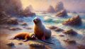A Geometric Ode to Coastal Wildlife: Sea Lions in a Modernist Seascape