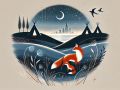 Serene Nighttime Elegy: Red Fox Under a Crescent Moon