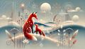 Enchanting Brush Calligraphy of Red Fox and Cub in Mystic Landscape