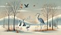 Serene Winter Landscape with Herons: A Brush Calligraphy Masterpiece