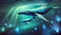 Luminous Depths: A Gray Whale and Calf Amidst Surreal Oceanic Glow