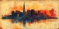 Fiery Sunset Over San Francisco Skyline: A Modern Artistic Illustration