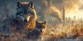 Mystical Encounter: Wolf and Cub in a Dystopian San Francisco