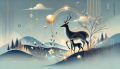 Enchanting Deer and Fawn Amidst Mystical Landscape Illustration