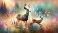 Enchanted Meadow: Mule Deer and Fawn in a Pastel Wilderness