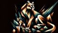 Cubist Interpretation of a Majestic Mountain Lion and Cub