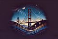 Enchanting Night View of the Golden Gate Bridge in Calligraphic Art