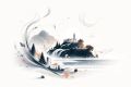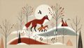 "Winter's Whisper: A Red Fox and Cub in Serene Brush Calligraphy"