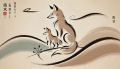 Coyote and Cub in Brush Calligraphy Style Amidst Serene Nature