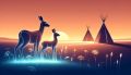 Serene Sunset with Mule Deer and Fawn in a Vibrant Meadow