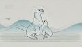 Minimalist Art of a California Sea Lion and Cub in Serene Pose