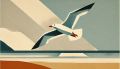 Geometric Flight: Abstract Art Depicting a Western Gull Over the Beach