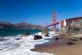 Majestic View of Golden Gate Bridge from a Rocky Beach