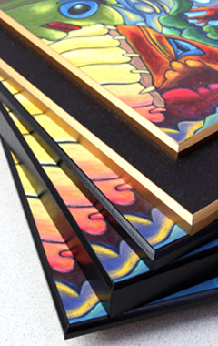 Plaque mounting (also called block or "plak" mounting) is an inexpensive and creative way to display your artwork without the worry of glass that can break, or the added weight of a frame.