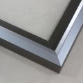Unique geometric 1 " floater. The face of this molding features an off center peak which gives it a unique contrast in the right lighting.  This frame comes in Metallic Blue Pewter with a dull satin finish.